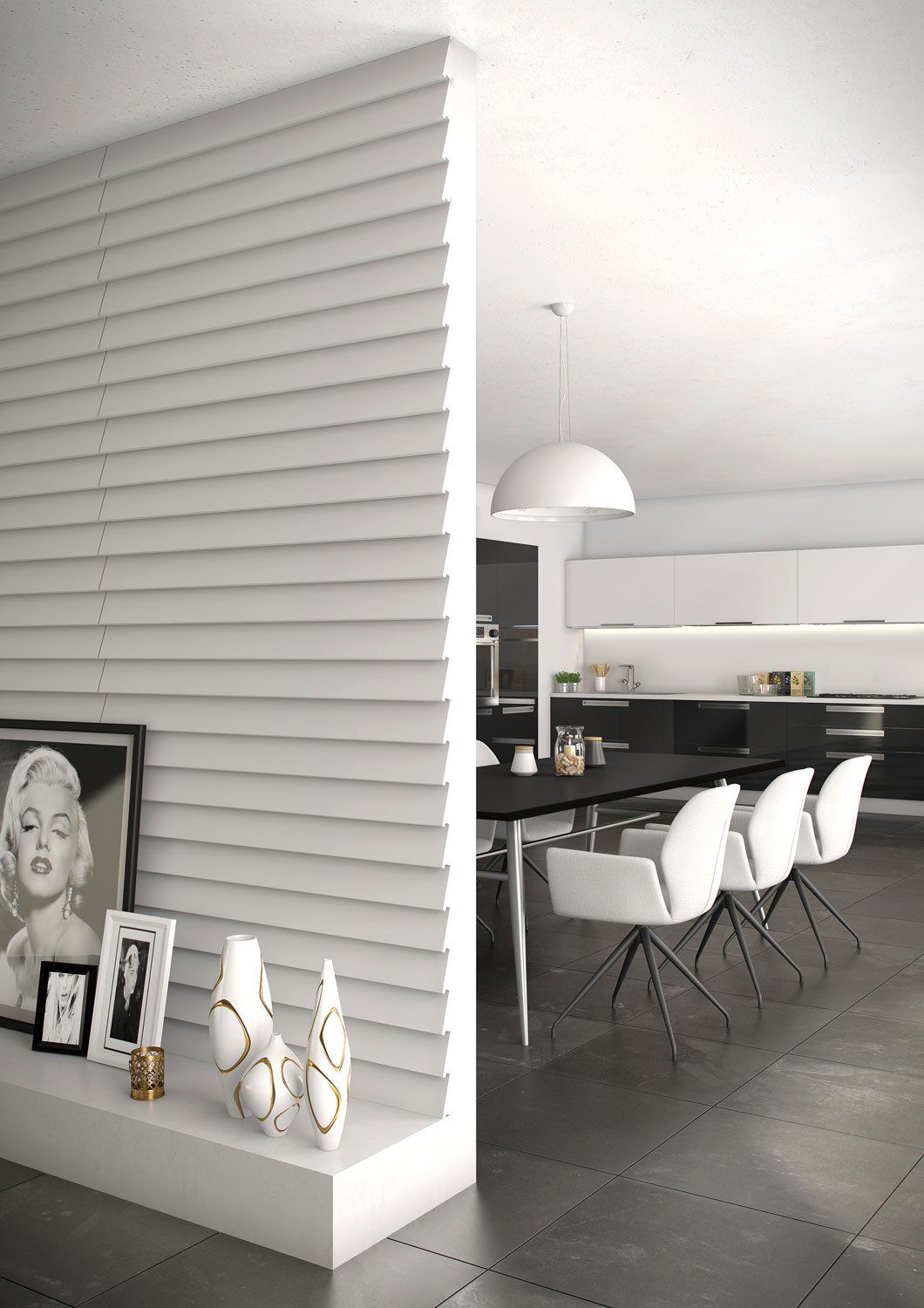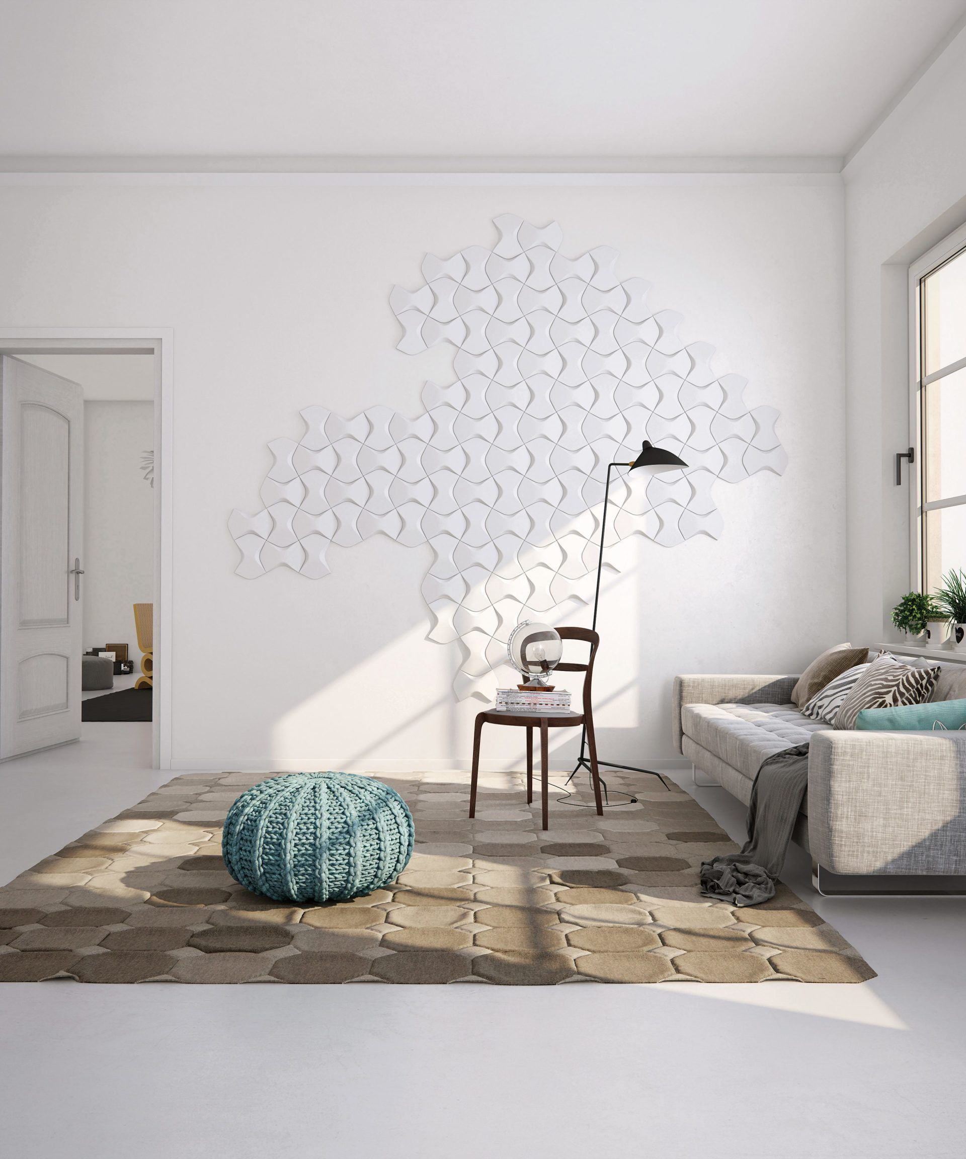 Divertitevi con la struttura dei pannelli murali ARSTYL. La combinazione di bianco puro o grigio profondo risulterà in una semplicità sofisticata di ombra e luce.